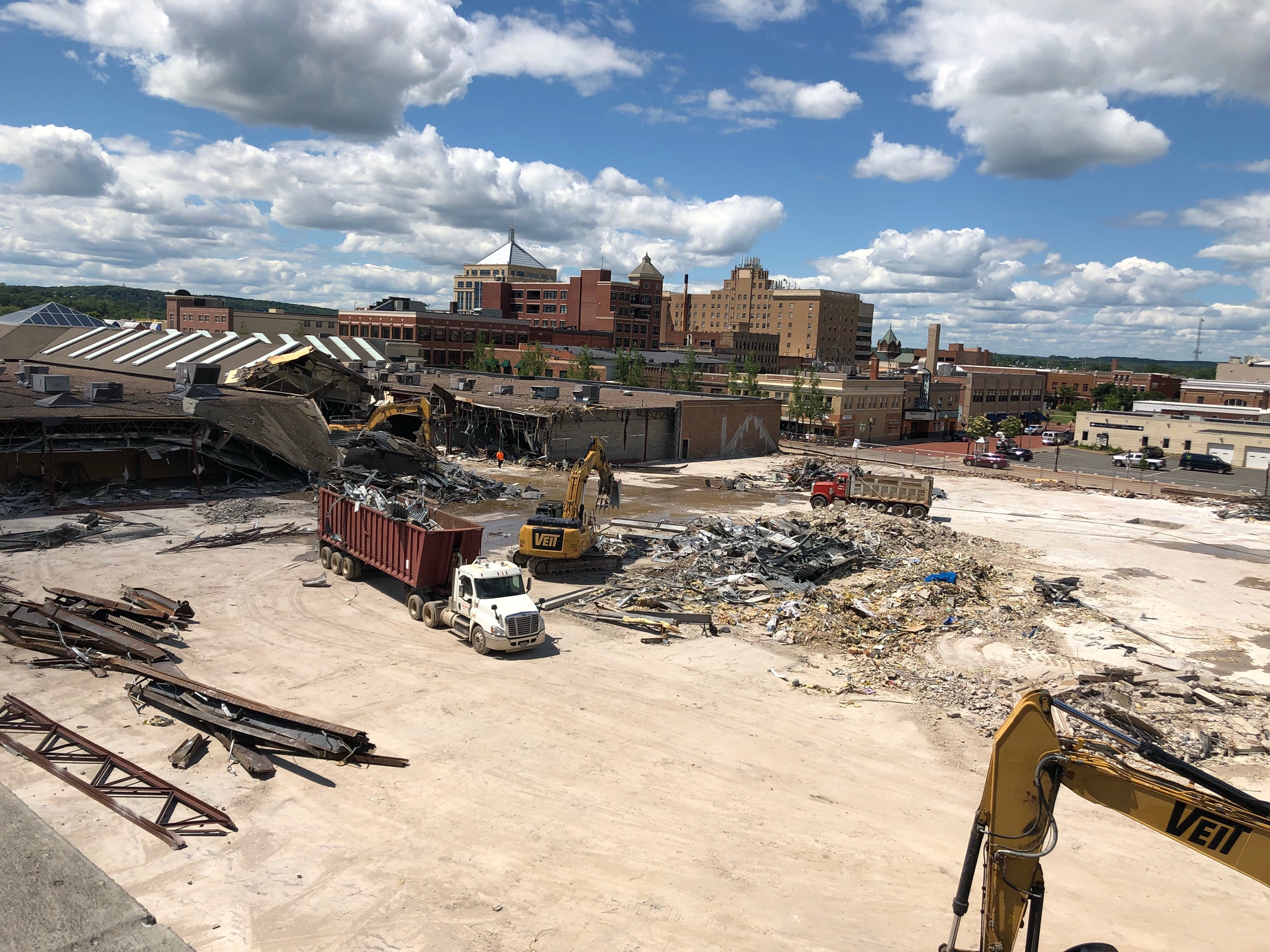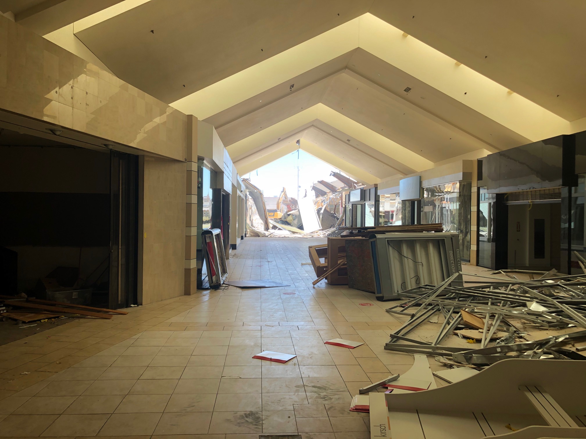 Last week crews started demolition into the Wausau Center Mall building heading west, dismantling the center corridor. Progress has been steady and on track. See photo gallery below from last week’s progress.